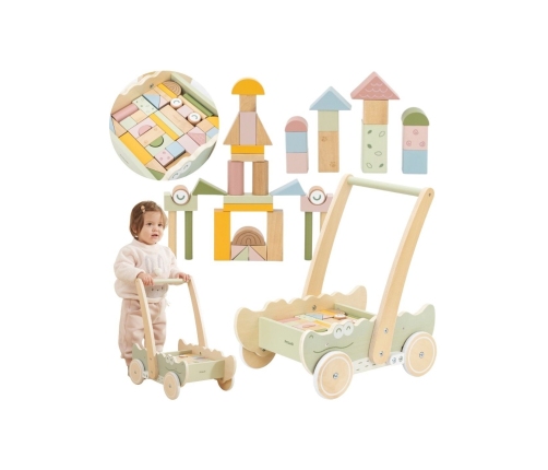 Odkryj radość pierwszych kroków z naszym uroczym chodzikiem-pchaczem w kształcie krokodyla! Ta wielofunkcyjna zabawka to idealny towarzysz rozwoju Twojego malucha. Stabilna konstrukcja i wygodny uchwyt zapewniają bezpieczne wsparcie podczas nauki chodzenia, a zestaw kolorowych klocków znajdujących się wewnątrz chodzika zachęca do kreatywnej zabawy i rozwijania motoryki.