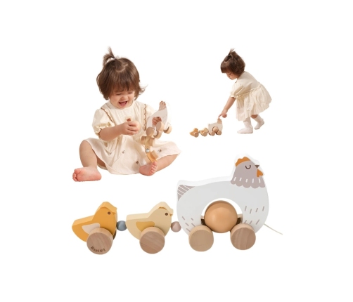 Ta urocza zabawka do ciągnięcia to doskonały towarzysz dla maluchów stawiających pierwsze kroki. Podczas poruszania się, pisklęta radośnie kołyszą się, a odłączane jajko obraca się, dostarczając dodatkowej frajdy. Zabawka nie tylko bawi, ale również wspiera rozwój koordynacji i zdolności motorycznych dziecka.