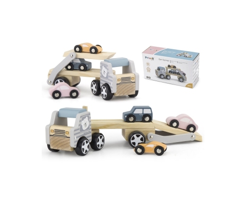 Nasza zabawka wykonana jest z wysokiej jakości drewna, co gwarantuje odporność na uszkodzenia. Zarówno samochody, jak i ciężarówka i laweta są pokryte pięknymi, nietoksycznymi farbami, co sprawia, że jest całkowicie bezpieczna dla dziecka.