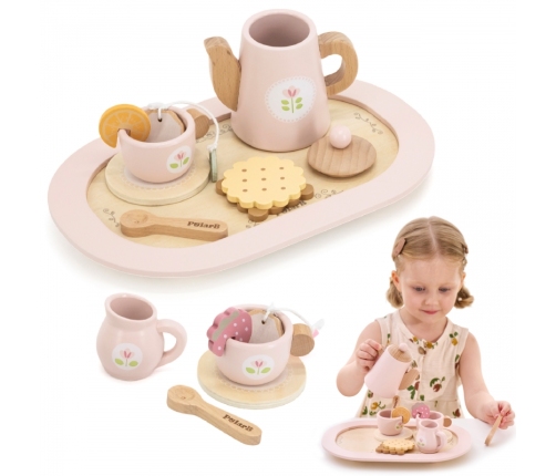 Drewniany Zestaw do Herbaty PolarB to uroczy komplet, który zachęca dzieci do organizowania swoich własnych przyjęć herbacianych. Zestaw zawiera drewniany dzbanek, filiżanki i podstawki, a także różnorodne dodatki jak torebki herbaty, plasterek cytryny czy truskawki. Każdy element jest starannie zaprojektowany, by pobudzać wyobraźnię dziecka i rozwijać jego umiejętności społeczne. Dzięki solidnemu wykonaniu, ten elegancki zestaw posłuży przez wiele godzin kreatywnej zabawy w naśladowanie dorosłych.