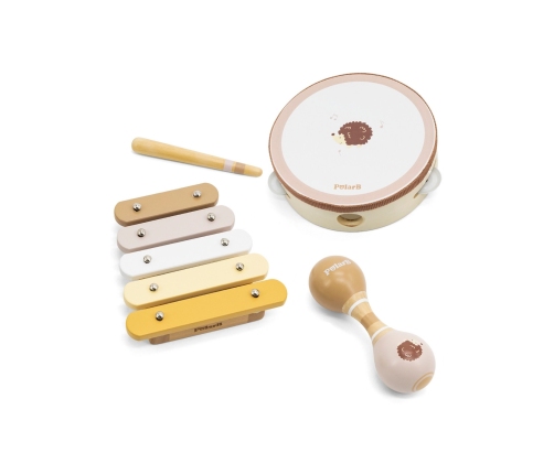 Zestaw Instrumentów Muzycznych z serii PolarB od renomowanej marki VIGA to strzał w dziesiątkę dla Twojego małego muzyka! Teraz Twoje dziecko będzie mogło ćwiczyć swoje umiejętności zarówno manualne, jak i słuchowe, a do tego wzmocni naturalne poczucie rytmu. Zawarte w zestawie trzy instrumenty, wykonane z lakierowanego drewna w zachwycających, pastelowych kolorach, będą przenikać dźwiękami przez cały pokój! Pośród instrumentów znajdziesz tamburyn, cymbałki oraz podwójne marakasy, które rozbudzą wyobraźnię Twojego dziecka. Spraw swojemu dziecku najwyższą jakość i niezapomniane chwile pełne muzyki!