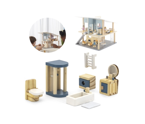 Seria zestawu mebelków dla lalek od renomowanej firmy Viga to idealny prezent dla twojego dziecka. Seria zawiera 5 różnych pomieszczeń w innych kolorystykach. Stwórz swój własny domek dla lalek i układaj meble oraz pomieszczenia wedle własnego uznania. Produkt wykonany jest z wysokiej jakości materiału oraz z dużą dbałością o szczegóły. Zabawka pomalowana jest nietoksycznymi farbami w łagodnej kolorystyce.