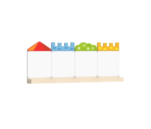 W skład zestawu Tablic Magnetycznych Ściennych VIGA Zamek wchodzą drewniane plansze z wieżami i koroną drzewa, oraz cztery tablice magnetyczne. Ten magiczny zestaw pobudzi wyobraźnię każdego dziecka, zapewniając radość oraz wyjątkowy rozwój umiejętności. Dzięki niemu maluchy będą miały niezliczone możliwości twórczego wyrażania siebie, rozwijania wyobraźni i zdobywania nowej wiedzy.