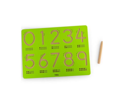 Tablica kreślarska od marki VIGA to idealna propozycja dla dzieci do trenowania rączki przed nauką pisania. Delikatnie wygrawerowane i zakrzywione rowki sprawiają, że idealnie nadaje się dla dzieci do kontrolowania ruchu dłoni i kształtowania pamięci mięśniowej poprzez wielokrotne śledzenie. Każda cyfra jest oznaczona strzałkami, co pomaga dzieciom w prawidłowej kolejności pisania. Tablica jest dostępna w kompaktowych rozmiarach, dzięki czemu dzieci mogą ją trzymać i używać na stole lub biurku.Dziecko poprzez zabawę uczy się ruchów odpowiedzialnych w przyszłości za rysowanie i pisanie, kształci płynność ruchów oraz ćwiczy koordynację wzrokowo - ruchową.