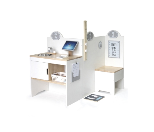 Wielofunkcyjne Centrum Medyczne od znanej i cenionej marki Viga to wspaniała zabawka, która pozwoli Twojemu dziecku poznać bliżej zawód lekarza czy pielęgniarki. Zestaw zawiera gabinet lekarski, poczekalnie, umywalkę i recepcję. Dodatkowo dołączone zostały profesjonalne sprzęty medyczne takie jak: stetoskop, ciśnieniomierz, młotek refleksyjny, termometr, sprzęt do wykonania badań rentgenowskich, strzykawki, tabletki, opakowania na pigułki. Dzięki zabawie możemy bliżej wyjaśnić dziecku na czym polega praca lekarza, możemy odgrywać rolę doktora, pielęgniarki czy pacjenta. Idealny sposób, aby przybliżyć dzieciom przebieg wizyty u lekarza, zwłaszcza tym, które boją się wizyt w gabinecie lekarskim. Świetny produkt dla maluchów, które chcą w przyszłości zostać lekarzami. Zabawka idealna do odgrywania ról, pomaga rozwinąć u dzieci wyobraźnię oraz umiejętności społeczne. Przeznaczona dla dzieci powyżej 3 roku życia.