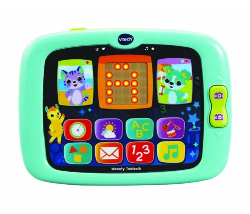 Nauka i zabawa razem z przyjaciółmi jest najlepsza! Dzięki wesołemu tablecikowi od VTech, Twoje dziecko pozna litery, cyfry i kształty. Dotykowy ekran odtwarza wesołe animacje przedstawiające zwierzątka i wiele więcej.