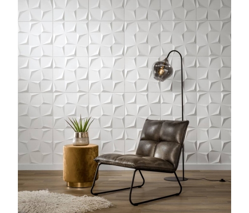 Šie Beau dizaina sienas paneļi lieliski iederēsies jebkurā interjerā. Katra trīs dimensiju paneļa izmērs ir 50 x 50 cm, tāpēc jūs tos varēsiet vienkārši uzstādīt pats. Sūtījumā ir iekļauti 12 sienas paneļi, ar kuriem var noklāt 3 m² lielu laukumu. Wall Art 3D sienas flīžu oriģinālā krāsa ir pelēkbalta, taču trīs dimensiju flīzes var nokrāsot ar jebkādu krāsu (ūdens vai eļļas bāzes) jums vēlamajā krāsā!