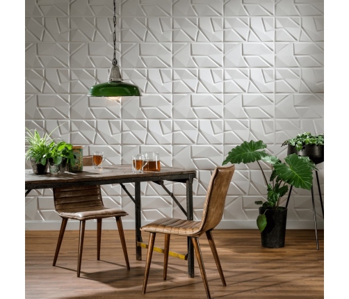 Šie Liam dizaina sienas paneļi lieliski iederēsies jebkurā interjerā. Katra trīs dimensiju paneļa izmērs ir 50 x 50 cm, tāpēc jūs tos varēsiet vienkārši uzstādīt pats. Sūtījumā ir iekļauti 24 sienas paneļi, ar kuriem var noklāt 6 m² lielu laukumu. Wall Art 3D sienas flīžu oriģinālā krāsa ir pelēkbalta, taču trīs dimensiju flīzes var nokrāsot ar jebkādu krāsu (ūdens vai eļļas bāzes) jums vēlamajā krāsā!