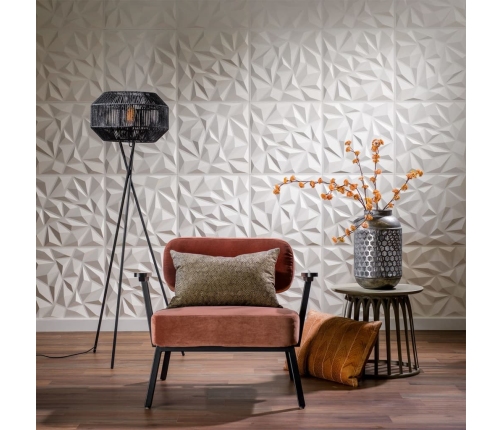 Šie Puck dizaina sienas paneļi lieliski iederēsies jebkurā interjerā. Katra trīs dimensiju paneļa izmērs ir 50 x 50 cm, tāpēc jūs tos varēsiet vienkārši uzstādīt pats. Sūtījumā ir iekļauti 24 sienas paneļi, ar kuriem var noklāt 6 m² lielu laukumu. Wall Art 3D sienas flīžu oriģinālā krāsa ir pelēkbalta, taču trīs dimensiju flīzes var nokrāsot ar jebkādu krāsu (ūdens vai eļļas bāzes) jums vēlamajā krāsā!