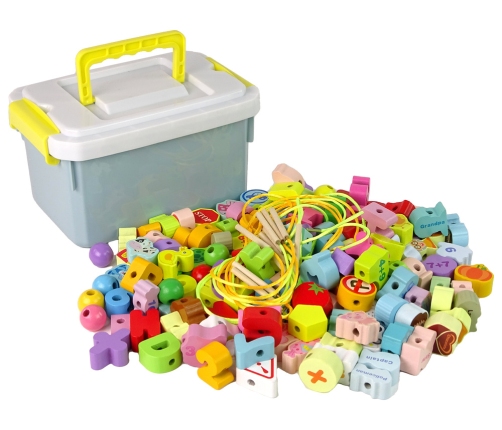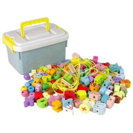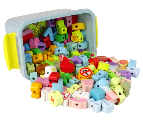 Wooden Bead-Blocks Educational Set Letters & Numbers for Threading