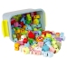 The bricks depict animals, vehicles, characters, numbers and letters. The set allows an unlimited number of combinations and games, just use your imagination. The beads are large, which makes them easy to string, and you can create a range of pictures, words and numbers. Great as an educational aid for learning addition, subtraction, multiplication and division.