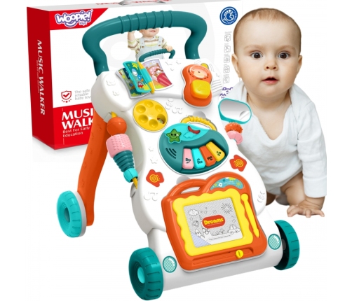 Grający Chodzik od marki WOOPIE to zabawka muzyczna dla niemowląt. Jest przeznaczona dla dzieci w wieku 6+ miesięcy. Zabawka posiada interaktywne elementy, które mogą pomóc w rozwijaniu umiejętności motorycznych, koordynacji wzrokowo-ruchowej i zmysłu słuchu dzięki swoim funkcjom muzycznym. Zabawka jest wyposażona w kolorowe przyciski i pokrętła, które nie tylko pobudzają wzrok, ale także odtwarzają różne melodie, gdy się je naciska lub obraca. Ta ciekawa zabawka oferuje zarówno wsparcie dla chodzących maluchów, jak i rozrywkę, która utrzymuje ich zainteresowanie, czyniąc ją wielofunkcyjnym narzędziem dla wczesnych etapów rozwoju.