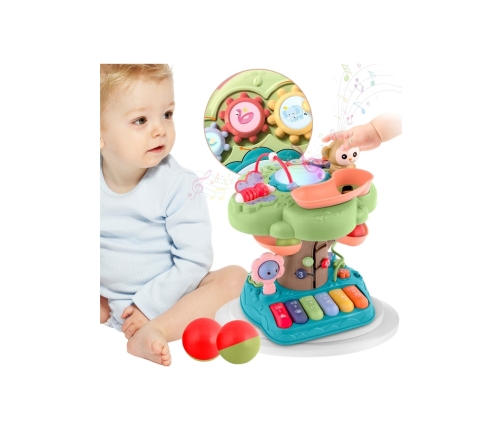 Oto wyjątkowe Interaktywne Drzewko Edukacyjne od marki Woopie, które stanie się ulubioną zabawką Twojego dziecka. Te kolorowe centrum zabawy łączy w sobie elementy muzyczne, sensoryczne i logiczne, wspierając rozwój motoryki małej, koordynacji wzrokowo-ruchowej oraz pierwszych umiejętności poznawczych. Dzięki 14 zróżnicowanym funkcjom, zabawka dostarcza długotrwałej rozrywki i zachęca do nauki poprzez aktywną zabawę. Drzewko posiada szereg interaktywnych elementów – od grającego pianinka i świecącego bębenka, przez tor kulkowy, aż po małpkę zwalniającą kulki i kolorowe koraliki do liczenia. Każda funkcja została zaprojektowana z myślą o bezpiecznej i rozwijającej zabawie. Ilość funkcji i ruchomych elementów jest ogromna, a ich odkrywanie da twojemu dziecku mnóstwo frajdy.