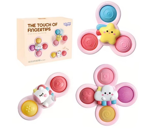 Zestaw Uroczych Spinnerów od marki WOOPIE zrobi na dziecku duże wrażenie. W zestawie znajdują się 3 szt. spinnerów: Jednorożec Gwiazdka Chmurka. Spinnery dziecko może zabrać i przyczepić wszędzie dzięki gumowym przyssawkom. Można przyczepić spinnera zarówno do szyby w czasie podróży oraz do wanny podczas kąpieli (zabawkę można moczyć). Łożyska spinnerów gwarantują długotrwały obrót. Odczepiane elementy pozwalają na łączenie ich w dowolny sposób. Zabawki posiadają gumowe elementy o różnej powierzchni co rozwinie zmysły dziecka oraz zadziała odstresowująco. Zabawa ćwiczy zwinność rączek oraz poprawia koordynację ręka-oko. Te zabawki mogą działać jako narzędzie do relaksacji i redukcji stresu, pomagając w osiągnięciu stanu spokoju i wyciszenia.