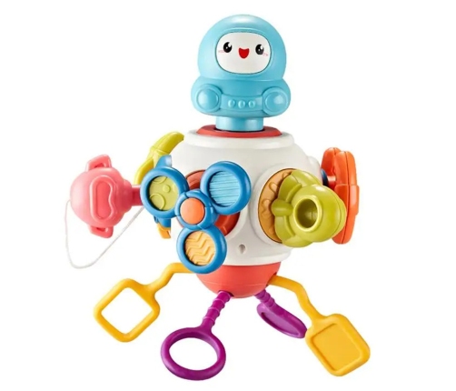 - - Zawiera wiele różnych elementów, które stymulują zmysły dziecka, takie jak rotujący astronauta czy spinner