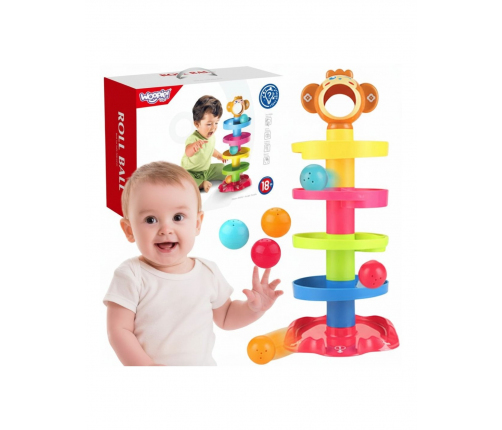 Kulodrom od WOOPIE to spiralna wieża zapewniająca niekończącą się zabawę. Ten kolorowy zestaw składa się z 6 kolorowych części , które maluch może z łatwością układać jedna na drugiej. Kulki turlają się po kolejnych segmentach konstrukcji, a na koniec wypadają jednym z trzech wyjść. Kulodrom wyposażony jest w 3 lekkie i łatwe do uchwycenia kulki w różnych kolorach, które podczas poruszania wydają dźwięk. Rozmiar jest odpowiedni dla małych rączek i pomaga rozwijać koordynację wzrokowo-ruchową.