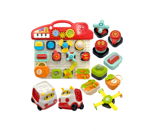 Kolorowy panel aktywności od marki Woopie to fascynująca zabawka rozwojowa zaprojektowana z myślą o wspieraniu rozwoju sensorycznego i motorycznego u dzieci. Panel składa się z różnorodnych interaktywnych elementów, które można dowolnie przyczepić i odczepić, podobnie jak klocki. W zestawie znajdziemy również samochodzik w kształcie kotka do którego można dowolnie doczepiać elementy z tablicy.