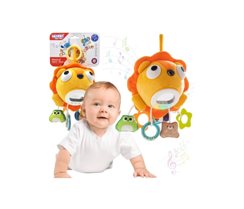 Ten pluszowy, muzyczny lew od marki Woopie to idealny towarzysz snu i zabawy dla każdego malucha. Połączenie delikatnej muzyki, uspokajających światełek i różnorodnych tekstur sprawia, że zabawka jest doskonałym narzędziem do stymulacji zmysłów dziecka i zapewnia mu poczucie bezpieczeństwa. Zabawka ma kształt uroczego, pluszowego lwa. Do jego tułowia przymocowane są cztery, różne zawieszki. Jedna z nich to bezpieczny gryzak, a pozostałe pełnią funkcję grzechotek, stymulując rozwój motoryczny i sensoryczny dziecka. Zabawkę można łatwo zawiesić na łóżeczku, wózku lub foteliku samochodowym dzięki praktycznemu uchwytowi, co zapewnia rozrywkę i ukojenie w każdej sytuacji.