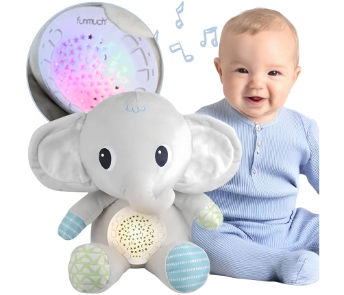 Mięciutki Słonik z Projektorem od Woopie to idealny przyjaciel dla każdego noworodka i niemowlęcia. Ta urocza przytulanka łączy w sobie funkcje projektora gwiazd i księżyców oraz pozytywki z uspokajającymi melodiami. Słonik pomoże ukoić maluszka do snu i stworzyć w pokoju magiczny, relaksujący nastrój. Moduł dźwiękowo-świetlny wbudowany w brzuch słonika oferuje aż 12 melodii, w tym delikatne kołysanki i uspokajający biały szum. Posiada także funkcję timera, umożliwiającą automatyczne wyłączenie po 30, 60 lub 90 minutach. Przytulanka wykonana jest z miękkiego, bezpiecznego pluszu, idealnego do tulenia i bezpiecznego od urodzenia.