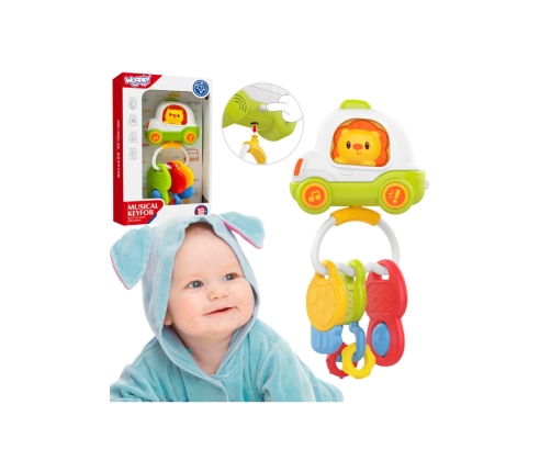 Kolorowa i interaktywna muzyczna zabawka Pilot Samochodzik z Kluczykami to doskonały wybór dla każdego malucha! Została zaprojektowana z myślą o tym, by poprzez zabawę wspierać rozwój motoryczny, sensoryczny i poznawczy dziecka już od najmłodszych lat. Uroczy lew w samochodziku przyciąga uwagę dziecka, zachęcając je do interakcji – naciskając przyciski, maluch uruchamia wesołe melodie, realistyczne dźwięki samochodowe oraz efekty świetlne, które pobudzają zmysły i zapewniają wielozmysłowe doznania. Zabawka posiada różnorodne elementy takie jak miękki gryzak, obrotowe przyciski, zawieszka oraz kluczyki, które można przekręcać i dotykać, co wspomaga naukę chwytania i trening zdolności manualnych. To idealny towarzysz do codziennej zabawy w domu, w podróży lub jako zawieszka do wózka czy fotelika samochodowego. Zabawka została wykonana z wysokiej jakości, bezpiecznych i nietoksycznych materiałów, jej zaokrąglone kształty i trwała konstrukcja sprawiają, że jest odpowiednia nawet dla najbardziej energicznych maluchów. Miękka tekstura gryzaka przynosi ulgę podczas ząbkowania, a przyjemne dla ucha dźwięki nie są zbyt głośne, dzięki czemu zabawa pozostaje komfortowa także dla rodziców. Dzięki swoim kompaktowym rozmiarom, zabawka doskonale mieści się w małych rączkach dziecka i może mu towarzyszyć wszędzie – w podróży, na spacerze czy podczas zabawy w domu.