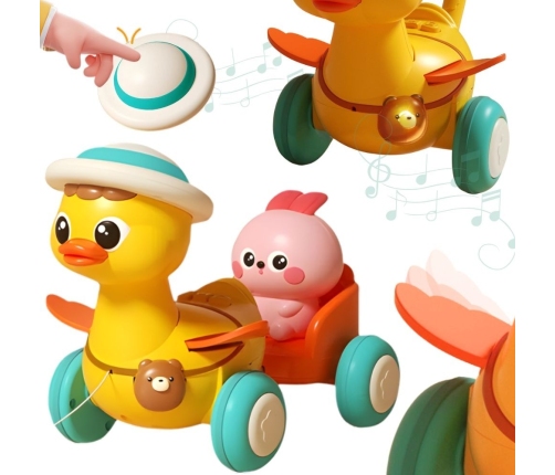 - - Ruchome elementy – skrzydełka kaczuszki poruszają się w rytm jazdy, co dodatkowo przyciąga uwagę dziecka i dodaje atrakcyjności zabawce