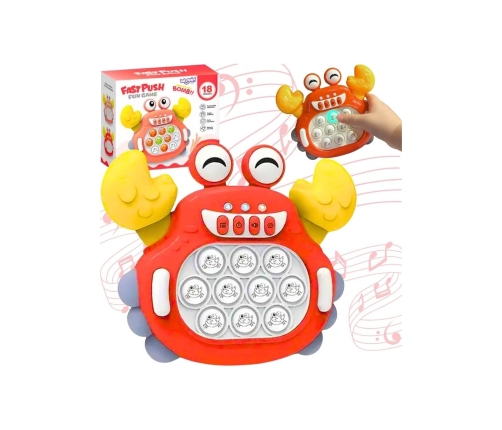 Gra POP IT Krab to zabawka antystresowa, która sprawdzi się już dla najmłodszych. Gra wydaje radosne dźwięki, które zachęcają dzieci do zabawy i urozmaicają rozgrywkę. Zabawka jest niewielka więc, sprawia, że możemy zabrać ją ze sobą. Pop It sprawia frajdę dzieciom oraz dorosłym, którzy chętnie po nią sięgają. Rozwija umysł, zdolności manualne, koordynację wzrokowo-ruchową oraz trenuje spostrzegawczość i pomaga w walce ze stresem.