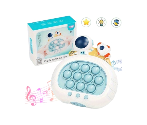 Gra POP IT Kosmos to zabawka antystresowa, która sprawdzi się już dla najmłodszych. Gra wydaje radosne dźwięki, które zachęcają dzieci do zabawy i urozmaicają rozgrywkę. Zabawka jest niewielka więc, sprawia, że możemy zabrać ją ze sobą. Pop It sprawia frajdę dzieciom oraz dorosłym, którzy chętnie po nią sięgają. Rozwija umysł, zdolności manualne, koordynację wzrokowo-ruchową oraz trenuje spostrzegawczość i pomaga w walce ze stresem.