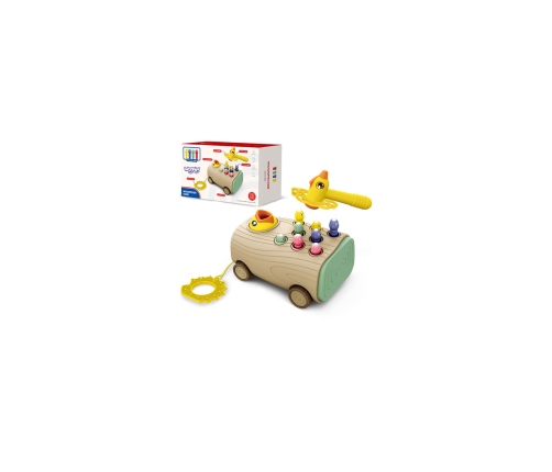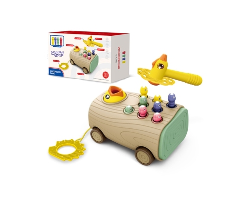 Zabawka 3w1 od marki WOOPIE to doskonały sposób na rozwój dziecka przez zabawę. Zabawka może towarzyszyć dziecku przy pierwszych etapach życia. Dla najmłodszego dziecka idealną funkcją będzie ciągacz. Dziecko nie będzie miało problemów z ciągnięciem wózka, dzięki cichym i niezacinającym się kółeczkom. Małe dzieci również zachwyci funkcja wbijaka. W zestawie dołączony został bezpieczny młotek dla dzieci do wbijania robaczków z dodatkową osłoną. Dla starszych dzieci idealna zabawką będzie gra zręcznościowa. Zabawa polega na chwytaniu dzięciołem zakończonym magnesem robaczków ukrytych w otworkach znajdujących się w drzewie, a następnie na ich ponownym wkładaniu w dziób ptaszka Proste zasady oraz intuicyjna obsługa sprawiają, że zagrać w nią może praktycznie każdy. Gra uczy przez zabawę - pomoże rozwinąć m. in. równowagę, umiejętności motoryczne (ruchowe) oraz wzrokowe. Zabawka jest sporym wyzwaniem dla malucha, wymaga skupienia uwagi oraz sprawności manualnej, ale przez to niezwykle zaciekawi dziecko.