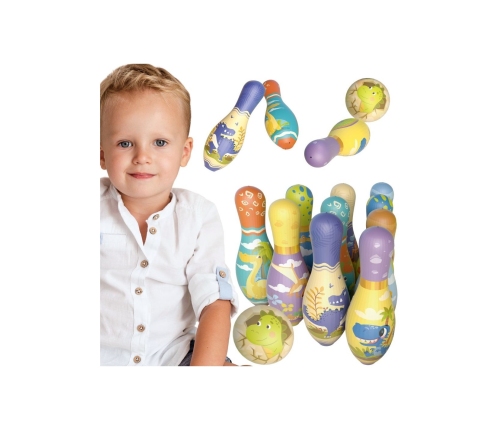 - - Kręgle z atrakcyjnymi, kolorowymi motywami dinozaurów