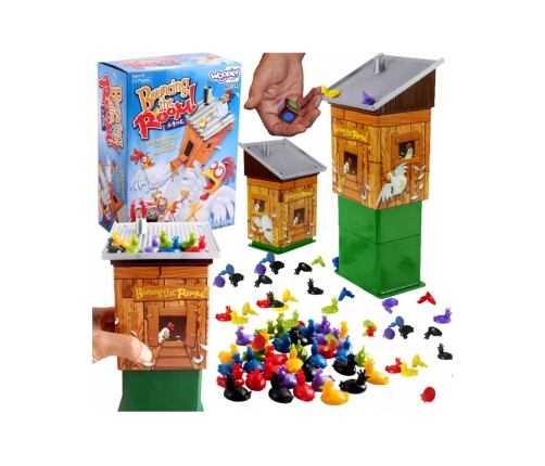 Gra Zręcznościowa Wybuchający Kurnik od marki WOOPIE to ekscytująca gra towarzyska, w której gracze losowo umieszczają kolorowe kurczaki na dachu kurnika, wybierając kolory za pomocą kostki. Kurnik może niespodziewanie eksplodować, a gracz, który w danym momencie trzyma kostkę, musi zbierać kurczaki.