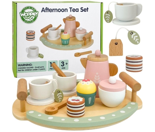 - - Kreatywność - Drewniane akcesoria (filiżanki, czajnik, ciastko...) pozwalają dziecku organizować własne przyjęcia herbaciane, eksperymentować z ustawianiem elementów, tworzyć nowe kombinacje i scenariusze bez sztywnych ograniczeń.
