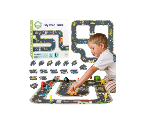 Układanie puzzli to dla dzieci okazja do swobodnej zabawy, która jednocześnie ćwiczy motorykę, koordynację ręka–oko oraz zdolność koncentracji. Co więcej, puzzle przedstawiają znaki drogowe, ulice i elementy ruchu miejskiego — maluch poznaje świat wokół siebie, ucząc się zasad bezpieczeństwa i organizacji ruchu.