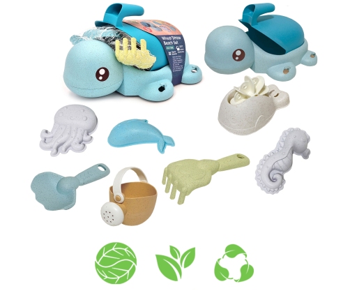 Zestaw do Piasku i Wanny Żółwik od marki WOOPIE z serii WOOPIE GREEN to świetny dodatek do piaskownicy, ogrodu a nawet wanny. Zestaw zawiera 8 elementów: żółwia + gumowe przyssawki, łyżkę, konewkę, 3 foremki, łopatkę i grabki oraz kołowrotek. Wiaderko ma wygodny uchwyt do przenoszenia. Zestaw ma najmodniejszy pastelowy design oraz został wykonany z organicznego i biodegradowalnego (podlegającemu samoistnemu rozkładowi) materiału. Dodatkowo podlega kompostowaniu. Produkt bezpieczny dla dzieci - dezynfekowany w 120 stopniach. Gwarancja super zabawy w piaskownicy, na plaży, w ogrodzie a nawet w wannie! Produkt przyjazny środowisku!