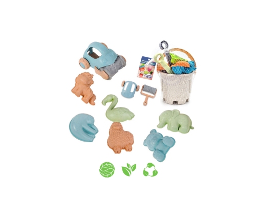 Zestaw do Piasku w Wiaderku od marki WOOPIE z serii GREEN to świetny dodatek do piaskownicy, a nawet ogrodu. Zestaw zawiera 10 elementów: wiaderko, 6 foremek, łopatkę i grabki oraz samochodzik. Wiaderko ma wygodny uchwyt do przenoszenia. Zestaw ma najmodniejszy pastelowy design oraz został wykonany z organicznego i biodegradowalnego (podlegającemu samoistnemu rozkładowi) materiału. Dodatkowo podlega kompostowaniu. Produkt bezpieczny dla dzieci - dezynfekowany w 120 stopniach. Gwarancja super zabawy w piaskownicy, na plaży, a nawet w ogrodzie! Produkt przyjazny środowisku!
