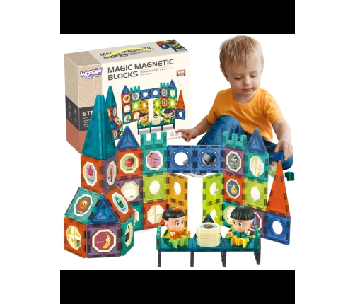 Klocki Magnetyczne od marki WOOPIE zwrócą uwagę i zafascynują Twoje dziecko. Klocki w bardzo łatwy sposób łączą się ze sobą, można z nich stworzyć wspaniałe konstrukcje np. zamek. Do zestawu oprócz klocków, naklejek i instrukcji dołączone są 2 figurki dzieci. Samo budowanie konstrukcji rozwinie u dziecka logiczne myślenie, wyobraźnie, kreatywność oraz pomoże mu skoncentrować się podczas tworzenia. Przez układanie klocków dziecko poznaje kształty i kolory oraz ćwiczy zdolności manualne tzw. motorykę małą.