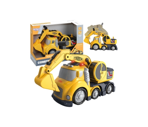 Koparka Construction Truck z serii CITY TRUCK pozwoli każdemu małemu budowniczemu przenieść zabawę na wyższy poziom i wcielić się w rolę operatora prawdziwej maszyny budowlanej. Wykonana z trwałych, bezpiecznych materiałów. Znajdziemy w niej ruchome ramię koparki, które umożliwia podnoszenie i opuszczanie łyżki, a także efekty świetlne i dźwiękowe, które aktywują się po naciśnięciu przycisku na dachu pojazdu.