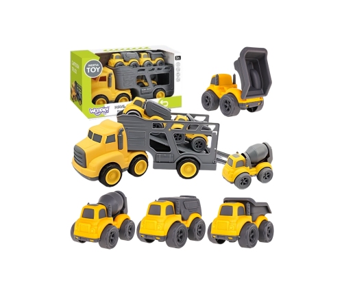 Wkrocz na plac budowy z niezwykłym zestawem samochodów budowlanych od marki Woopie! Duża ciężarówka z lawetą przewozi aż trzy mniejsze pojazdy: wywrotkę, betoniarkę i śmieciarkę. Każdy z nich wyposażony jest w ruchome elementy, które sprawiają, że zabawa staje się jeszcze bardziej realistyczna i angażująca. Zestaw zachwyca solidnym wykonaniem, żywymi kolorami i dbałością o detale, gwarantując długie godziny kreatywnej rozrywki dla każdego małego budowniczego.