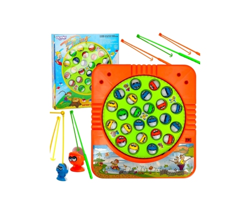 - - Zestaw zawiera: 4 kolorowe wędki, planszę do gry, 24 ryby