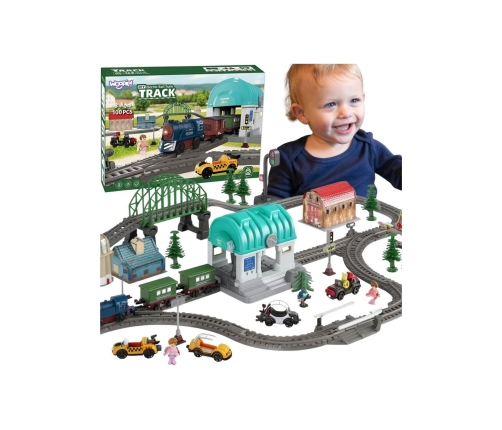 - - 108 elementów w zestawie – w tym tory, most, tunel, stacja, pojazdy i figurki