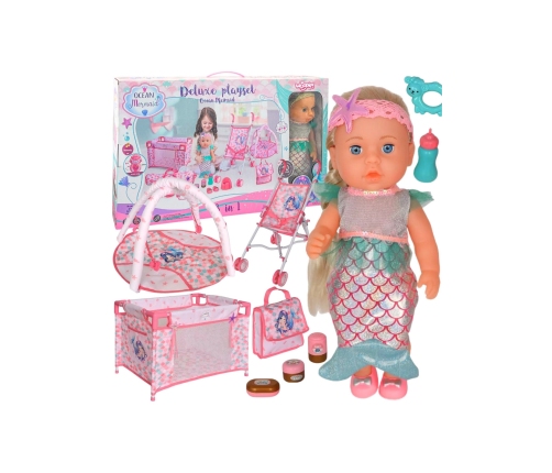 Odkryj bajkowy świat morskich przygód z wyjątkowym zestawem Deluxe Playset Ocean Mermaid 18 w 1! Ten bogaty komplet to gwarancja wielu godzin kreatywnej i radosnej zabawy. Największą atrakcją jest urocza Lalka Syrenka, która wydaje aż 10 różnych dźwięków, zachwycając każdą małą fankę oceanu. W komplecie znajdziesz wózek, łóżeczko, torby oraz liczne akcesoria, które pozwolą bawić się w opiekę i odgrywanie ról. To doskonały prezent, który wspiera rozwój wyobraźni, empatii i umiejętności społecznych dziecka!