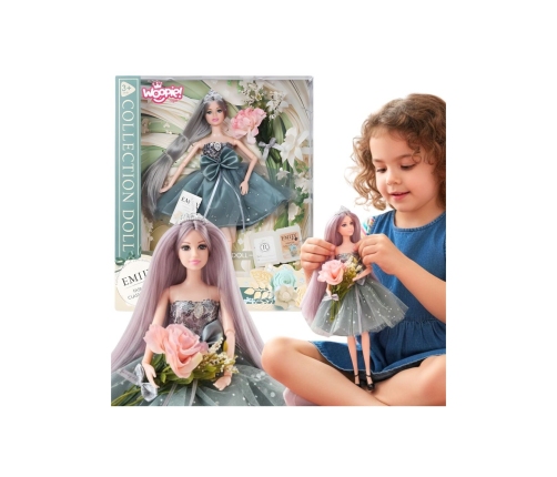 Poznaj elegancką lalkę Emi od marki WOOPIE ROYAL, która zachwyca swoim wyjątkowym stylem i klasą! Ubrana w modną, rozkloszowaną suknię z kokardą, wygląda jak prawdziwa dama gotowa na bal. Jej długie fioletowo-srebrne włosy i błyszcząca korona dodają uroku, inspirując dzieci do kreatywnej zabawy i stylizacji. To doskonały prezent dla dziewczynek, które kochają modę i marzą o byciu projektantkami. Z tą lalką każda zabawa zamieni się w elegancką przygodę pełną fantazji!