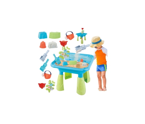 Stół Wodny 2w1 Piaskownica od marki WOOPIE jest idealną zabawka do zabawy z wodą i piaskiem. Zestaw zawiera 14 akcesoriów: 4 foremki, konewkę, młynek i 2 łopatki. Stolik posiada 2 wgłębienia, które jedno wypełnij wodą, a drugie piaskiem, co pozwala na zabawę wszędzie. Dziecko może wlewać wodę do młynka i patrzeć jak woda się przemieszcza. Zestaw jest przeznaczony do zabawy w domu, jak i na zewnątrz. Idealne do zabawy w domu i na plaży lub piaskownicy.