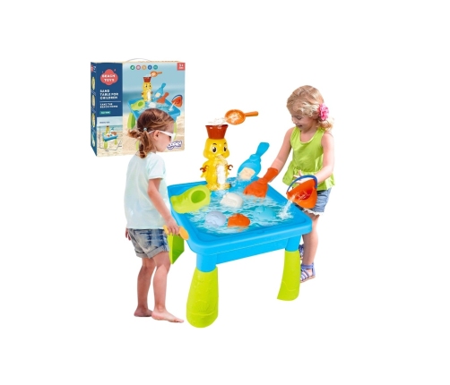 Stół Do Piasku od marki WOOPIE jest idealną zabawka do zabawy z wodą i piaskiem. Zestaw zawiera 9 akcesoriów: łopatkę, grabki, wiaderko, foremki, kaczuszkę z kołowrotkiem i wiele innych. Po nalaniu wody do głowy, z kaczki wypływa strumień - dająca efekt wodospadu, co na pewno umili zabawę każdemu maluchowi. Kaczkę można odłączyć od stolika i przyczepić do ściany lub wanny w łazience za pomocą przyssawek. Dodatkowo kaczusia posiada uchwyty na szczoteczkę do zębów, dzięki czemu można ją przyczepić przy umywalce idealnie do wzrostu dziecka. Zestaw jest przeznaczony do zabawy w domu, jak i na zewnątrz. Idealne do zabawy w domu i na plaży lub piaskownicy.