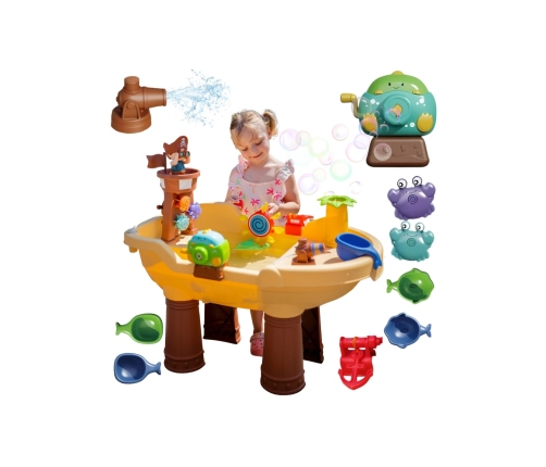 Stolik Wodny Piracka Łódź marki Woopie to niezwykła zabawka, która przenosi dzieci w świat pirackich przygód i zapewnia godziny kreatywnej zabawy na świeżym powietrzu. Dzięki bogatemu zestawowi kolorowych akcesoriów, ruchomym elementom i pirackiej wieży maluchy mogą eksperymentować z wodą, bawić się bąbelkami, kręcić kołem wodnym i odkrywać mnóstwo możliwości zabawy. Prosta, solidna konstrukcja oraz duże rozmiary sprawiają, że stolik jest wygodny i atrakcyjny nawet dla kilku dzieci jednocześnie.