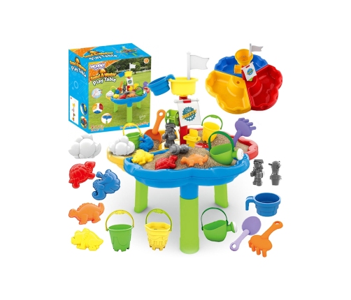 Stół Do Piasku od marki WOOPIE jest idealną zabawką do zabawy z wodą i piaskiem. Zestaw zawiera 13 akcesoriów: stolik z wyciąganymi nóżkami, foremki, wiaderka, konewkę, łopatkę i wiele innych. Stolik jest podzielony na trzy części, do jednej można wlać wodę, do drugiej wsypać piasek, a w trzeciej budować! Zestaw jest przeznaczony do zabawy w domu, jak i na zewnątrz. Idealne do zabawy w domu i na plaży lub w piaskownicy.