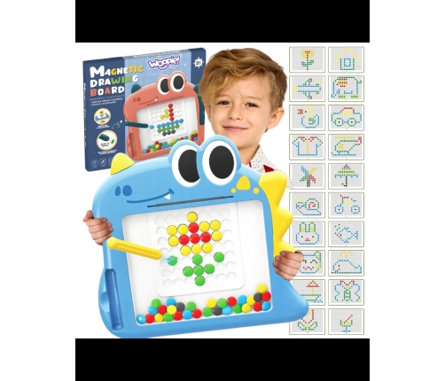 Tablica Magnetyczna MagPad od marki WOOPIE otwiera przed Twoim dzieckiem drzwi do świata kreatywności i edukacji. Dzięki tej wyjątkowej tablicy Twoje dziecko ma okazję tworzyć niepowtarzalne wzory i mozaiki. W skład zestawu, oprócz samej tablicy, wchodzi magnetyczny pisak oraz magnetyczne guziki do tworzenia. Ograniczeniem jest jedynie wyobraźnia i kreatywność - maluch może swobodnie układać wzory według własnych pomysłów. Guziki są mocne i trwałe, a układanie jest intuicyjne i proste. Ten zestaw to nie tylko zabawa, ale też doskonałe narzędzie do nauki i rozwijania zdolności manualnych, koncentracji oraz wyobraźni.