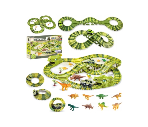 Tor Samochodowy XXL Dinozaury 240 elementów od marki WOOPIE to własny park dinozaurów z torem przeszkód, który nada się idealnie dla małego fana tych prehistorycznych zwierząt. Ogromna ilość elementów pozwala puścić wodze fantazji i zbudować swój wymarzony tor. Dzięki elastyczności toru, autko ma lepszą przyczepność. Dziecko wymyślając tor rozwija swoją wyobraźnię oraz kreatywność, a przy budowaniu go poprawia swoje zdolności manualne oraz rozwija małą motorykę.
