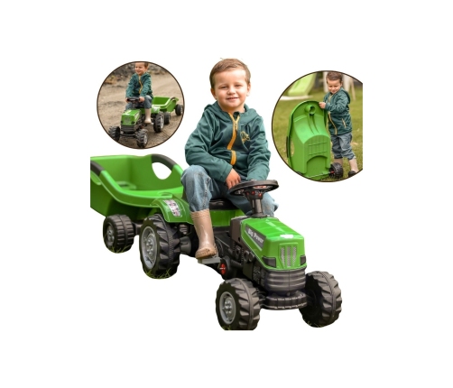 Zielony Traktor Na Pedały Big Power Z Przyczepą Pozwoli na wejście na wyższy poziom zabawy w małego rolnika. Wykonany z wytrzymałego tworzywa sztucznego i wyposażony w praktyczną przyczepę, z pewnością stanie się ulubioną zabawką każdego dziecka. Ten pięknie zaprojektowany pojazd posiada regulowane siedzisko zapewniając wygodę jazdy dla każdego malucha.