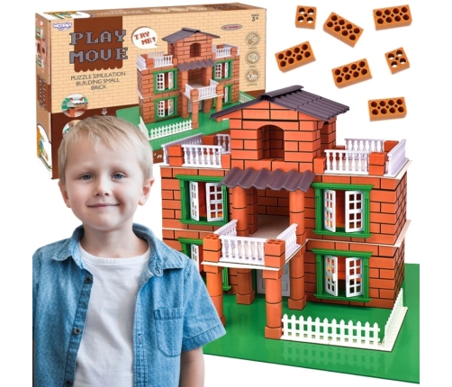 Zestaw do budowania z cegieł - willa marki Woopie To kreatywny zestaw do budowania domu z małych cegiełek, który pozwala dziecku wcielić się w rolę małego architekta i murarza, tworząc realistyczne konstrukcje krok po kroku z użyciem bezpiecznej „zaprawy” i akcesoriów jak w prawdziwej budowie.