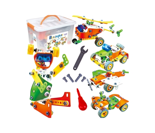- - Zestaw pozwala na zbudowanie 5 różnych pojazdów: robota, samolotu, quada, jeepa oraz helikopteru